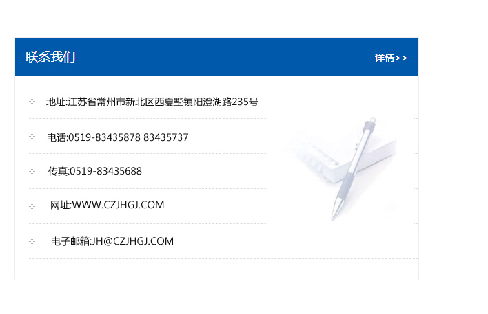 傳真:0519-83435688    郵編:213135    網址:WWW.czjhgj_com.xusjet.com    電子郵箱:JH@czjhgj_com.xusjet.com